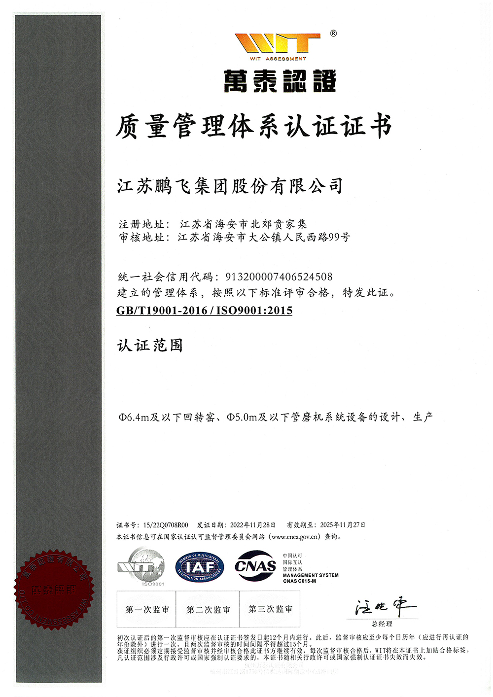 質(zhì)量管理體系認(rèn)證證書