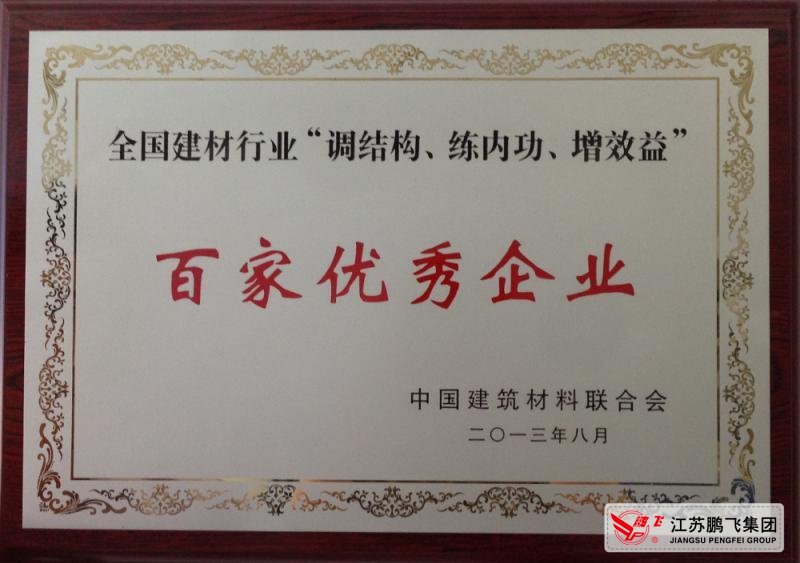 為樹立典型,有效遏制經(jīng)濟效益下滑,推進建材行業(yè)調(diào)整結(jié)構(gòu)和轉(zhuǎn)型升級,弘揚正能量,發(fā)揮優(yōu)秀企業(yè)的典型示范作用,促進行業(yè)科學發(fā)展,中國建材聯(lián)合會與各省市地方建材行業(yè)協(xié)會聯(lián)手開展推薦表彰“調(diào)結(jié)構(gòu)、練內(nèi)功、增效益”百家優(yōu)秀企業(yè)評比表彰活動。江蘇鵬飛集團強抓市場機遇,堅持科學發(fā)展之路,創(chuàng)新經(jīng)營模式,被授予“調(diào)結(jié)構(gòu)、練內(nèi)功、增效益”百家優(yōu)秀企業(yè)榮譽稱號。