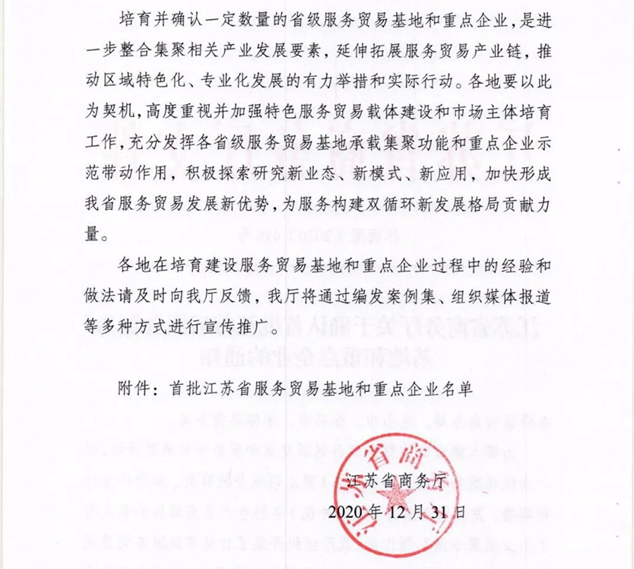 為深入推進(jìn)江蘇省服務(wù)貿(mào)易創(chuàng)新發(fā)展和服務(wù)外包轉(zhuǎn)型升級,進(jìn)一步優(yōu)化服務(wù)貿(mào)易(服務(wù)外包)重點(diǎn)領(lǐng)域空間布局、加快產(chǎn)業(yè)結(jié)構(gòu)調(diào)整,發(fā)揮服務(wù)貿(mào)易(服務(wù)外包)各特色產(chǎn)業(yè)集聚區(qū)和重點(diǎn)骨干企業(yè)集聚示范引領(lǐng)作用,江蘇省商務(wù)廳組織開展了首批省級服務(wù)貿(mào)易基地和重點(diǎn)企業(yè)遴選工作,江蘇鵬飛集團(tuán)股份有限公司獲評省首批服務(wù)貿(mào)易重點(diǎn)企業(yè)。