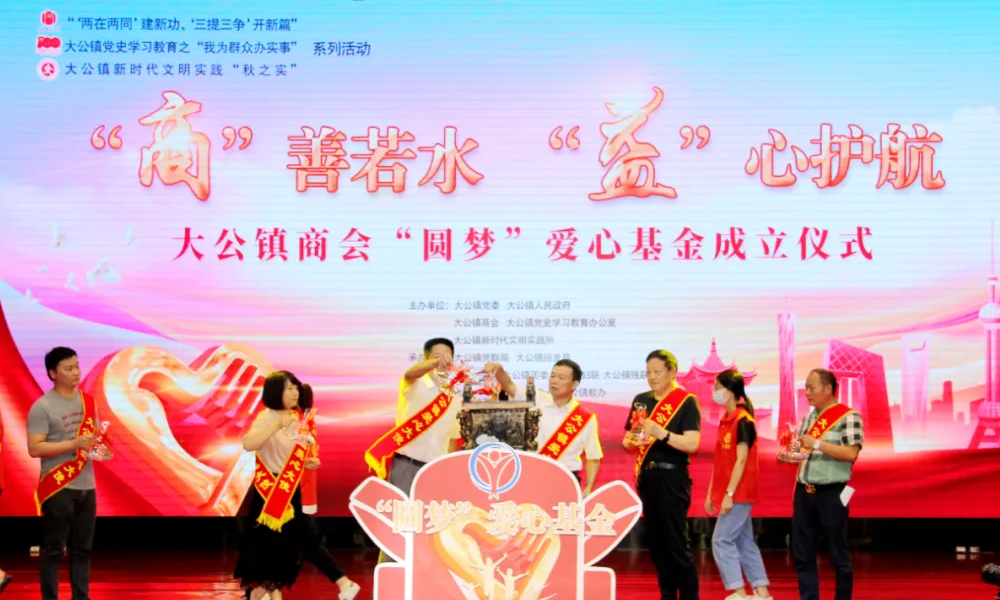 涓涓細(xì)流匯成大海,大公鎮(zhèn)商會會員企業(yè)家代表共同將愛心基金注入愛心池。緩緩騰起的煙霧,象征著企業(yè)蒸蒸日上的業(yè)績,更象征著青少年們騰起而飛的夢想!