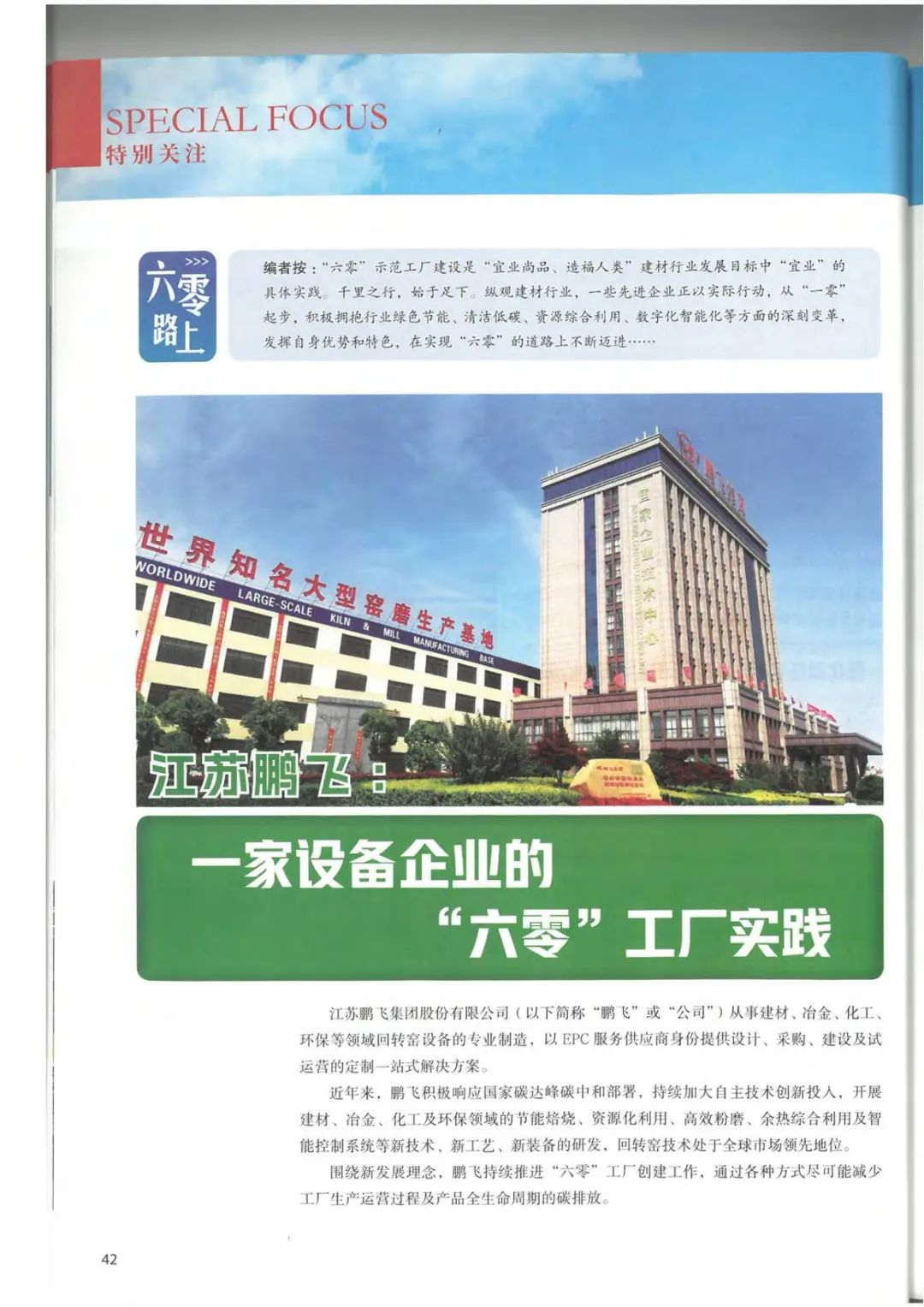 《中國建材雜志》刊登鵬飛“六零”工廠實(shí)踐