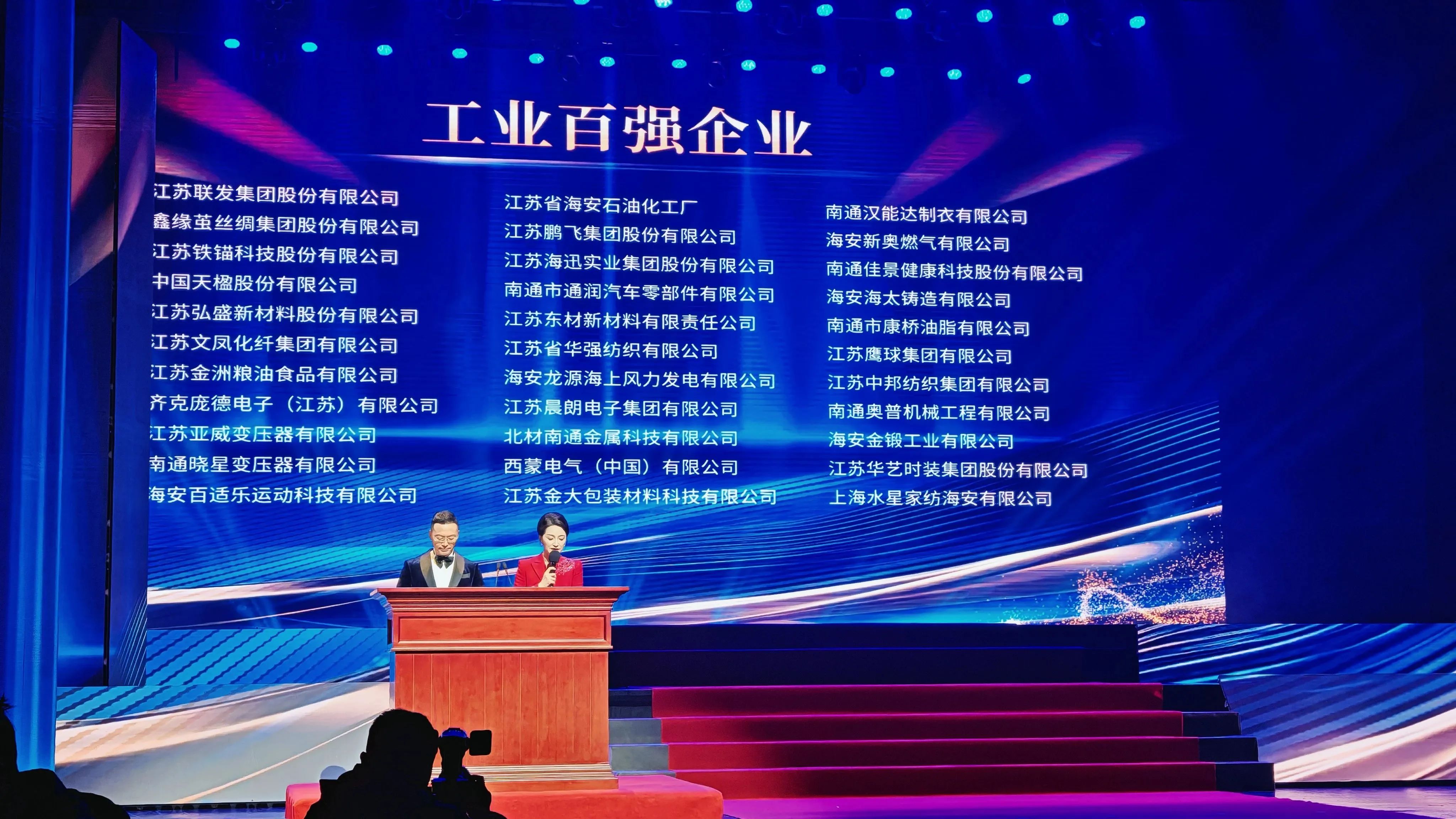 2025年2月4日,海安市經(jīng)濟(jì)高質(zhì)量發(fā)展大會(huì)暨2024年度影響力企業(yè)家頒獎(jiǎng)儀式舉行。市四套班子全體負(fù)責(zé)人,各區(qū)鎮(zhèn)、市級(jí)機(jī)關(guān)各部門(mén)主要負(fù)責(zé)人,十大專(zhuān)業(yè)園區(qū)辦公室、產(chǎn)業(yè)鏈培育辦公室負(fù)責(zé)人,市屬?lài)?guó)企以及供電、燃?xì)狻⑼ㄐ?、金融、在海高校、各產(chǎn)業(yè)研究院主要負(fù)責(zé)人,全市約800家企業(yè)主要負(fù)責(zé)人參加活動(dòng)。會(huì)議通報(bào)了農(nóng)業(yè)高質(zhì)量發(fā)展十強(qiáng)企業(yè)、開(kāi)放型經(jīng)濟(jì)先進(jìn)企業(yè)、稅收貢獻(xiàn)超億元企業(yè)、稅收貢獻(xiàn)超5000萬(wàn)元企業(yè)、工業(yè)百?gòu)?qiáng)企業(yè)、現(xiàn)代服務(wù)業(yè)十強(qiáng)企業(yè)、星級(jí)企業(yè)家、建筑業(yè)十強(qiáng)企業(yè)、服務(wù)地方經(jīng)濟(jì)發(fā)展優(yōu)勝金融單位名單,發(fā)布了2024年度海安影響力企業(yè)家名單。