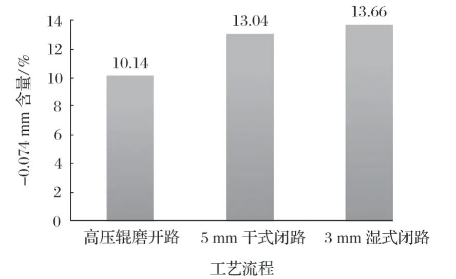 圖5 不同高壓輥磨工藝流程產(chǎn)品 -0.074 mm 含