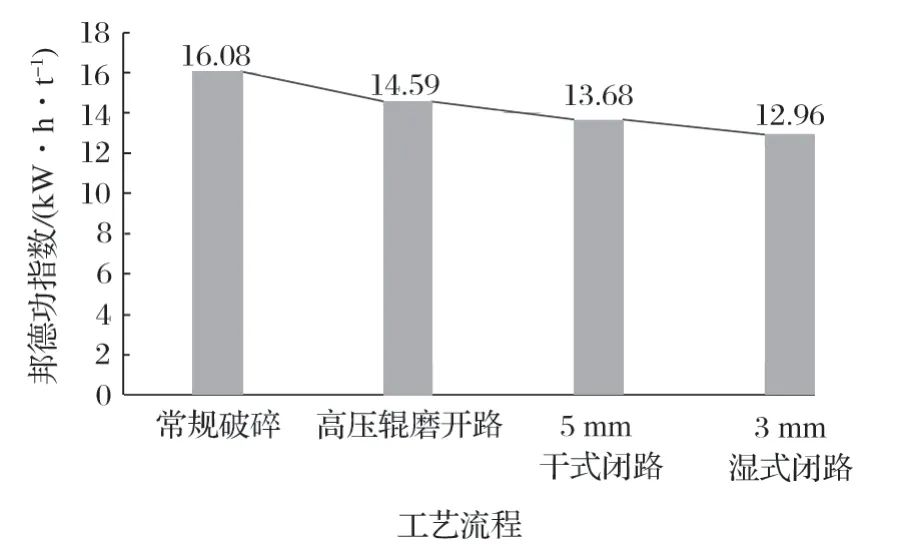 圖6 不同工藝流程邦德功指數(shù)對(duì)比