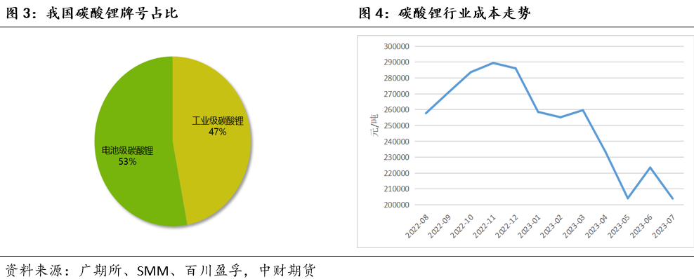 2、需求方面(1)廣東省作為國(guó)內(nèi)3C電子商品制造消費(fèi)大區(qū),其鋰電池產(chǎn)業(yè)基礎(chǔ)雄厚,擁有最完善的鋰電池產(chǎn)業(yè)鏈,涵蓋了從上游金屬礦產(chǎn)資源、電池材料,到中游電芯制造及PACK組裝,再到下游鋰電池應(yīng)用及電池回收利用的全產(chǎn)業(yè)鏈。(2)碳酸鋰的主要終端消費(fèi)為新能源產(chǎn)業(yè)(電動(dòng)汽車(chē)、儲(chǔ)能)及3C消費(fèi)類(lèi)電池。根據(jù)市場(chǎng)反饋,2023年6月我國(guó)新能源汽車(chē)產(chǎn)銷(xiāo)分別完成78.4萬(wàn)輛和80.6萬(wàn)輛,同比分別增長(zhǎng)32.8%和35.2%,市場(chǎng)占有率達(dá)到30.7%。6月我國(guó)動(dòng)力電池產(chǎn)量共計(jì)60.1GWh,同比增長(zhǎng)45.7%,環(huán)比增長(zhǎng)6.3%。其中三元電池產(chǎn)量17.7GWh,占總產(chǎn)量29.4%,同比下降4.2%,環(huán)比下降4.9%;磷酸鐵鋰電池產(chǎn)量42.2GWh,占總產(chǎn)量70.3%,同比增長(zhǎng)86.3%,環(huán)比增長(zhǎng)11.7%。6月,我國(guó)動(dòng)力電池銷(xiāo)量共計(jì)52.2GWh,同比增長(zhǎng)9.9%。其中三元電池銷(xiāo)量18.4GWh,占總銷(xiāo)量35.2%,同比下降16.8%;磷酸鐵鋰電池銷(xiāo)量33.7GWh,占總銷(xiāo)量64.5%,同比增長(zhǎng)33.0%。6月,我國(guó)動(dòng)力電池裝車(chē)量32.9GWh,同比增長(zhǎng)21.8%,環(huán)比增長(zhǎng)16.5%。其中三元電池裝車(chē)量10.1GWh,占總裝車(chē)量30.6%,同比下降13%,環(huán)比增長(zhǎng)11.6%;磷酸鐵鋰電池裝車(chē)量22.7GWh,占總裝車(chē)量69.1%,同比增長(zhǎng)47.5%,環(huán)比增長(zhǎng)18.7%。(3)今年5月中旬開(kāi)始,儲(chǔ)能市場(chǎng)需求逐漸向好,磷酸鐵鋰市場(chǎng)開(kāi)工率上漲,帶動(dòng)了碳酸鋰的需求量,預(yù)計(jì)下半年儲(chǔ)能市場(chǎng)需求增量顯著。進(jìn)入7月份以后,隨著3C數(shù)碼市場(chǎng)出口貿(mào)易的訂單逐步完結(jié),需求又恢復(fù)平淡。動(dòng)力市場(chǎng)活躍度雖有增強(qiáng),但還未完全恢復(fù),終端的汽車(chē)動(dòng)力電池需求量仍較為有限。正極材料企業(yè)多有備貨,碳酸鋰高價(jià)向下傳導(dǎo)困難,放緩了備貨節(jié)奏,觀望市場(chǎng)走勢(shì),采購(gòu)較為謹(jǐn)慎。(4)下游企業(yè)基本采用隨行就市的報(bào)價(jià)模式,根據(jù)原材料價(jià)格來(lái)擬定交易合同。開(kāi)工率受訂單影響,上半年動(dòng)力市場(chǎng)訂單狀況不佳,總體較去年沒(méi)有穩(wěn)定增長(zhǎng);3C消費(fèi)端海外訂單增量明顯,進(jìn)出口貿(mào)易狀況良好;儲(chǔ)能市場(chǎng)逐步增量,但訂單、需求、價(jià)格等向上傳導(dǎo)仍需時(shí)間,目前碳酸鋰的需求端情況仍較弱。(5)今年碳酸鋰價(jià)格大幅下跌,上游貿(mào)易商違約率不高。國(guó)內(nèi)訂單在市場(chǎng)價(jià)格波動(dòng)劇烈的影響下,視價(jià)格行情分成兩種情況,原材料價(jià)格上漲時(shí),上游企業(yè)較為強(qiáng)勢(shì),原材料價(jià)格下跌時(shí),下游較為強(qiáng)勢(shì),會(huì)取消原有訂單報(bào)價(jià),簽署新訂單。出口的貿(mào)易訂單極少違約,且因今年碳酸鋰價(jià)格回落的緣故,今年新開(kāi)工生產(chǎn)的銷(xiāo)售利潤(rùn)率較高。(6)目前下游的供應(yīng)和銷(xiāo)售情況皆平穩(wěn),原料庫(kù)存一般維持在2周左右。