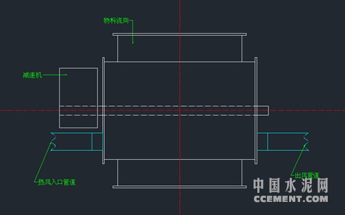 方案二:在鎖風(fēng)閥軸向位置安裝導(dǎo)風(fēng)管,將窯尾熱風(fēng)通入鎖風(fēng)閥,增加內(nèi)部溫度,防止粘料,后從另一側(cè)通入磨機(jī)中,由于本公司安裝空間有限,以及成本等因素考慮,后分析認(rèn)為這種方法并不適用與本公司。(如圖一)