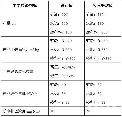 該生產(chǎn)線是按照年產(chǎn)60萬噸礦粉/100萬噸水泥設(shè)計(jì),粉磨系統(tǒng)主要設(shè)備配置及性能參數(shù)見表1: