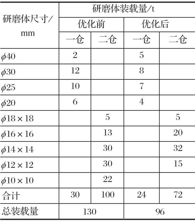 表1 優(yōu)化前后研磨體級(jí)配