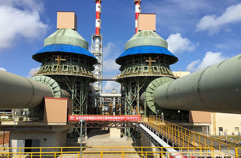 (2)回轉(zhuǎn)窯:回轉(zhuǎn)窯由筒體、支撐裝置、變速傳動(dòng)裝置、擋輪裝置、窯尾及窯頭密封、窯頭罩組成。窯體與水平呈3.5%傾斜放置。配有兩套支撐裝置,其托輪軸承為水冷式油勺潤(rùn)滑滑動(dòng)軸承,并有球面瓦能自動(dòng)調(diào)心。在靠近大齒圈處還配有液壓擋輪。采用變頻調(diào)速電機(jī)驅(qū)動(dòng)窯體,并設(shè)有附助傳動(dòng)驅(qū)動(dòng)窯體。窯頭窯尾采用彈簧片式密封裝置。采用變頻調(diào)速電機(jī)驅(qū)動(dòng)窯體結(jié)合預(yù)熱器分解率,有效控制煅燒時(shí)間及溫度,達(dá)到生燒和過(guò)燒指標(biāo)要求。